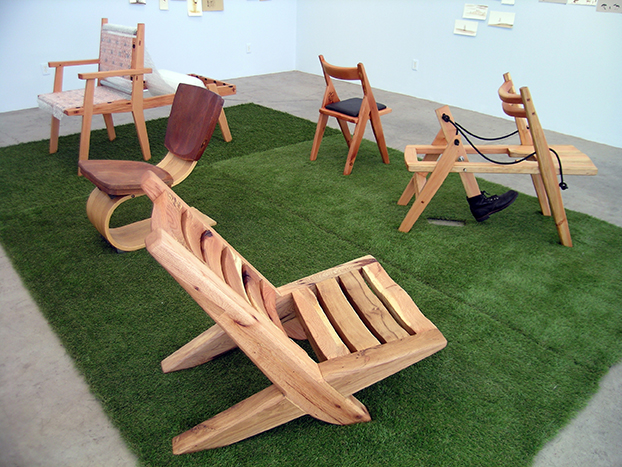 The artist has been compelled to forge objects since he was four-years-old, literally. When, equipped with a set of plastic tools in a kid’s tool belt, he marched out to build a barn on his family’s property only to be turned back by the carpenters that had been employed to do so. He settled by coaxing a jewelry box for his mother from the men’s scrap. At age eleven, he would enter an apprenticeship in building with a neighbor, the industrial designer Tom Bush. While Riiska often acts as a designer and/or manufactures multiples, his process and works, as easily, enter the realm of art. End function, form, size, tone, touch, guided by the reclaimed wood that is, other than his hands and the viewer’s interaction, Riiska’s basic material. Andrew Riiska has been exhibited in galleries in New York, San Francisco and Los Angeles and was featured in the 2010 California Design Biennial at Pasadena Museum of California Art. This will be his first show at The Good Luck Gallery.
